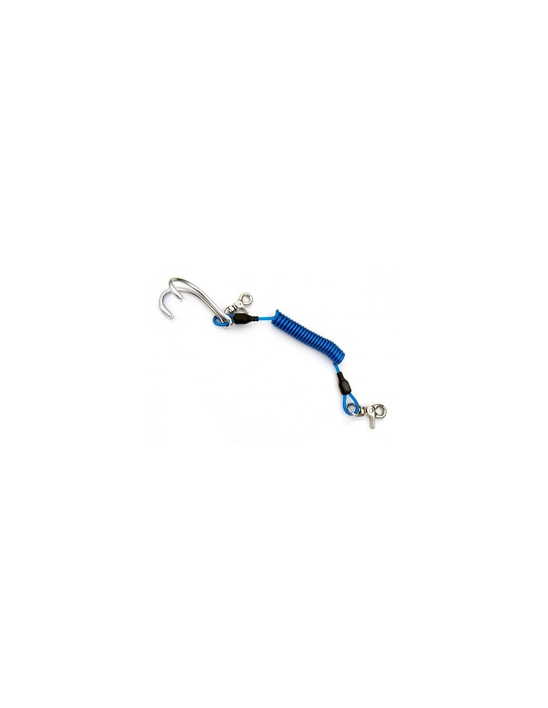 Extensor con ánima de acero inoxidable. Mosquetón en un extremo y gancho para anclaje al fondo para buceo con corrientes.