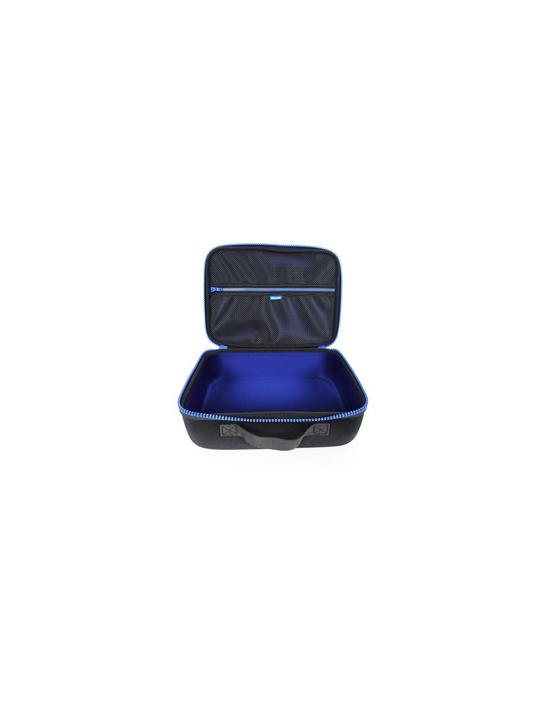 - Estuche negro con detalles en azul y cremallera altamente resistente a la corrosión