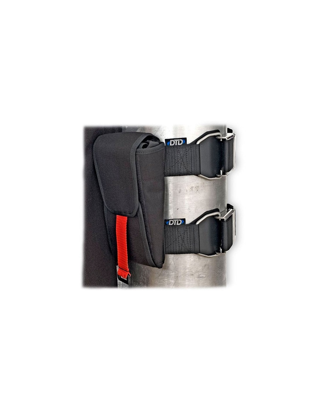Robusto sistema porta lastre para anclar en las cinchas porta botella. Consiste en 2 bolsillos, uno que alberga el lastre en si y el exterior que alberga el primero. El exterior se puede abrir tanto por arriba como por abajo y en la parte de abajo dispone de una cincha para poder tirar de ella y abrir el bolsillo rápidamente y fácimente.