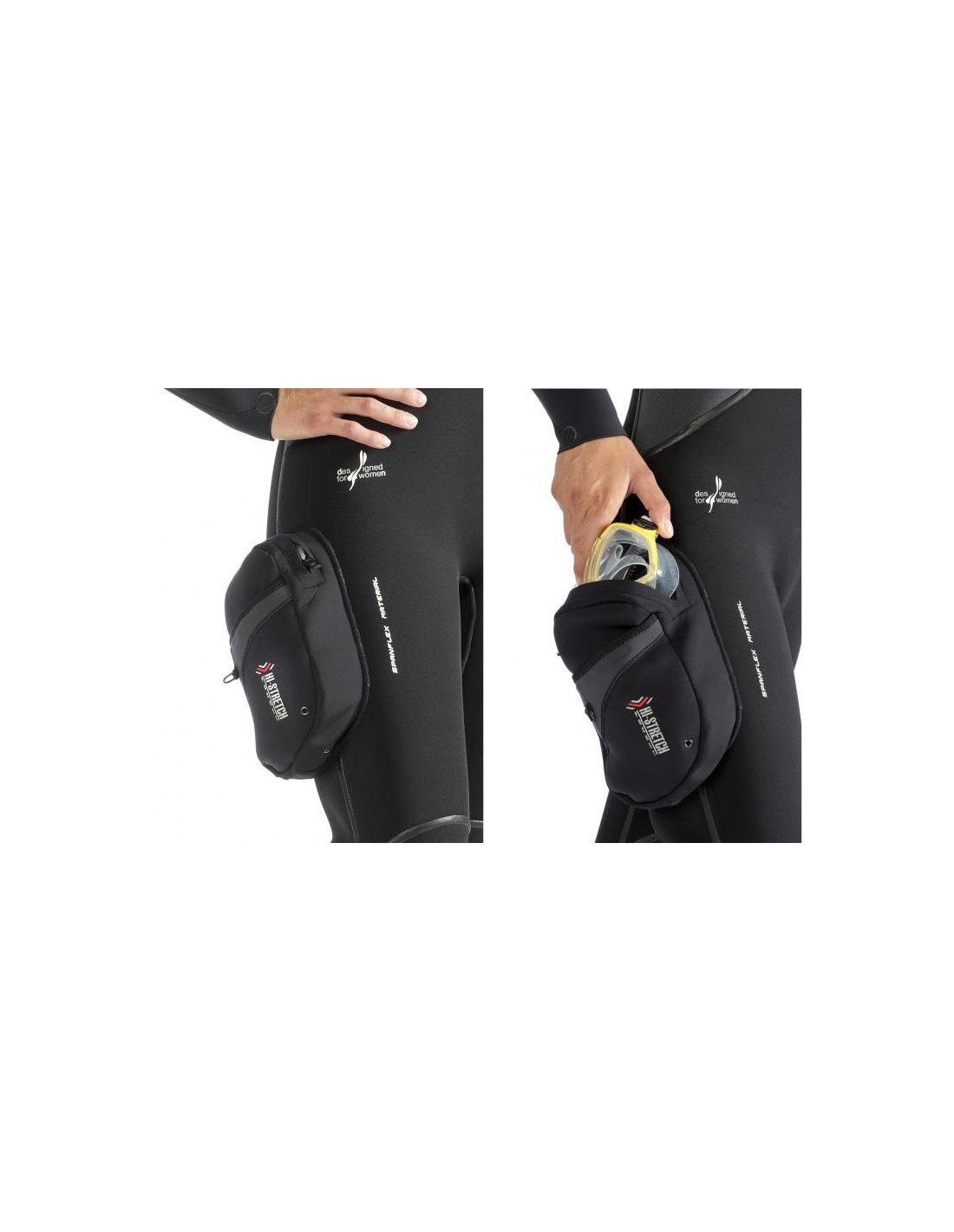 Bolsillo portaobjetos de neopreno en cadera. Cremallera YKK.