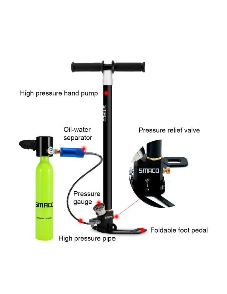 Bomba de carga manual (carga máxima 150 Bar) para las botellas Smaco.