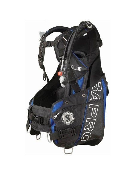 El Glide es un chaleco hidrostático de ajuste frontal con características de diseño especiales que maximizan la comodidad, el ajuste y el rendimiento. Los hombros del Glide cuentan con un nuevo diseño de cinchas en Y que se adapta mejor al cuerpo, para permitir un excelente control y una mayor amplitud de movimiento de brazos. Una anilla triangular de acero inoxidable gestiona las fuerzas en el centro de la Y, para equilibrar la presión en el cuerpo y mantener el arnés bajo control, independientemente de la condición de inmersión y de la posición en el agua. La correa inferior va conectada al backpack, donde se une con el cinturón ventral para proporcionar una conexión segura y cómoda. El sistema de purga incluye tres válvulas de última generación que permiten desinflar la vejiga envolvente en cualquier posición natatoria.