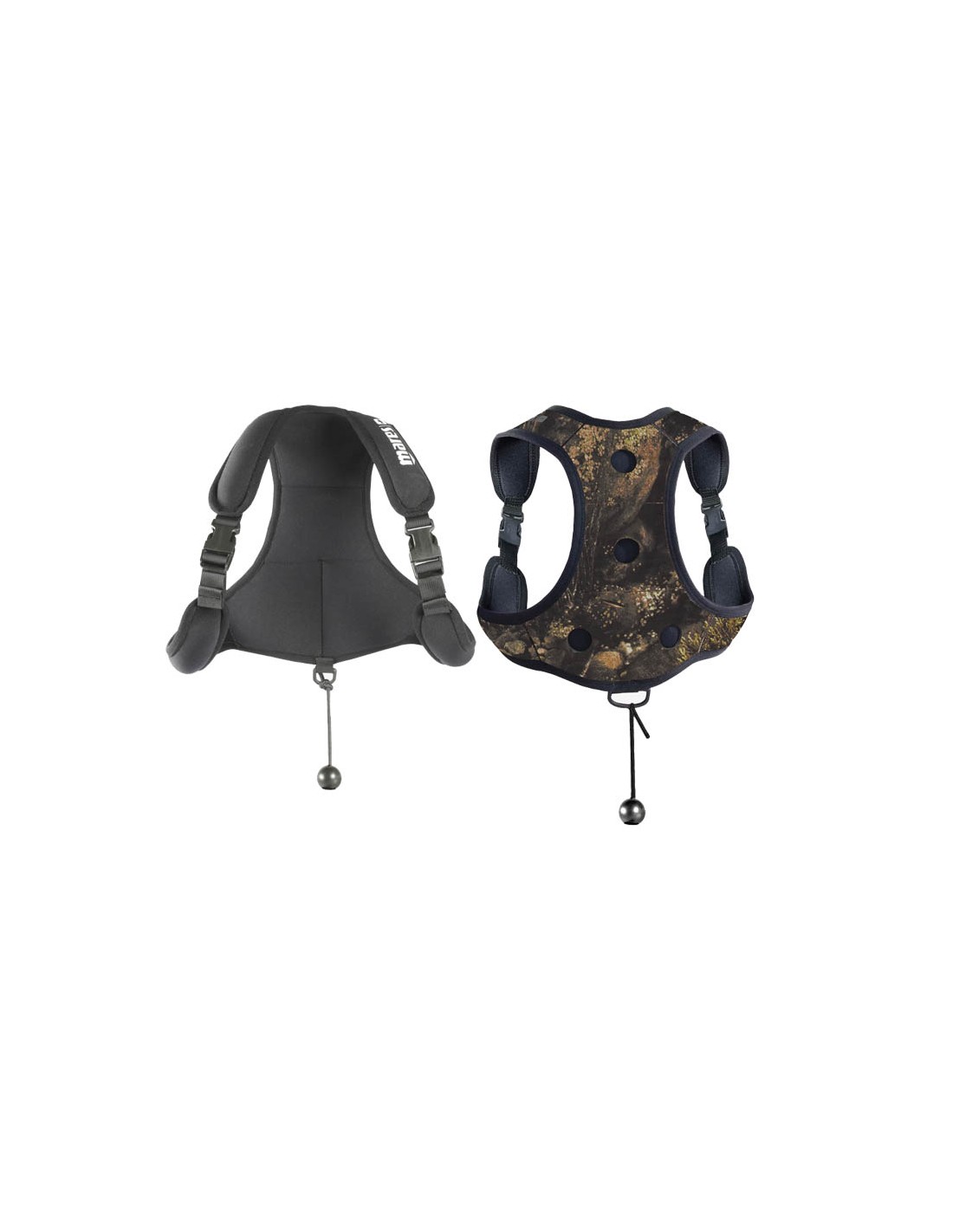 Mochila anatómica y modular para la apnea. Distribuye el peso perfectamente, con bolsillos que pueden contener 500g y 1kg de lastre estándar para un máximo de 4kg.
