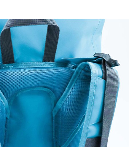 La Mochila estanca cuenta con correas ajustables para modificar el tamaño según la cantidad de equipo que tengamos que alojar dentro. El bolsillo impermeable exterior se puede usar para dividir artículos y es especialmente útil después de haber estado en el agua para separar el equipo mojado de los artículos que deben permanecer secos.