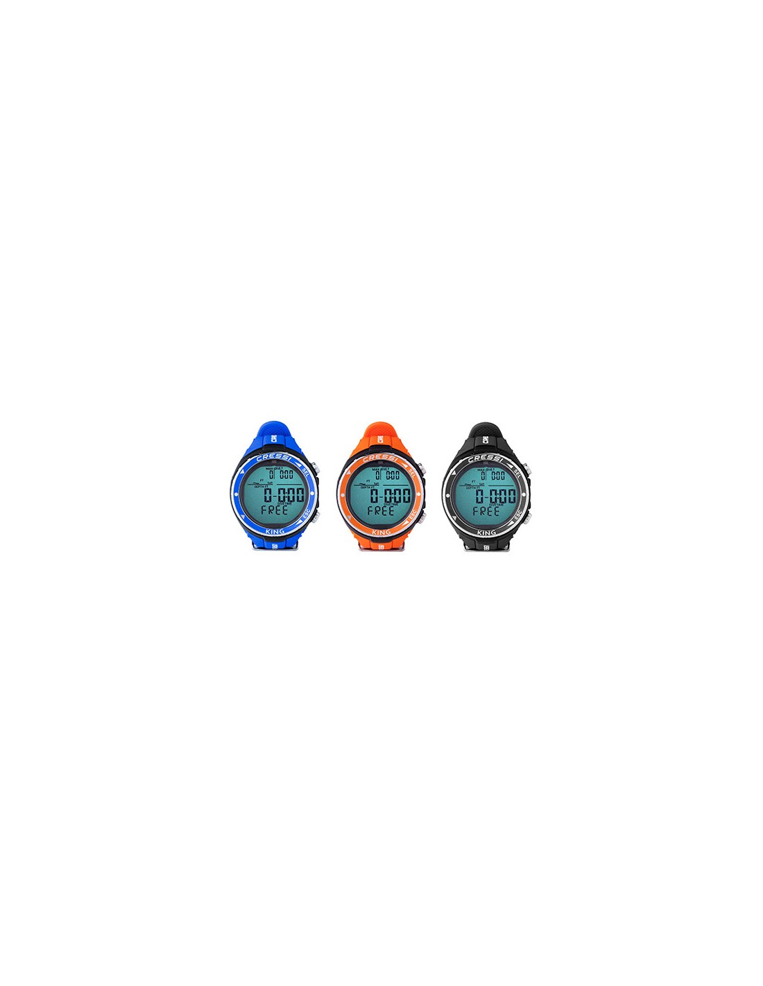 - MODO TARAVANA: En caso de practicar apnea o pesca submarina de alto nivel con ritmos y/o profundidades muy elevadas, KING permite configurar hasta 8 niveles de protección frente a la enfermedad de Taravana (enfermedad descompresiva en apnea). No existen algoritmos oficiales a aplicar que contemplen las diferentes variables que pueden provocar un accidente de este tipo, por lo que depende de la propia experiencia del deportista y una evaluación de las circunstancias de la jornada y de la acumulación de nitrógeno residual en días precedentes, aconsejara uno u otro nivel de intervalo entre bajadas a definir en 8 posibles niveles. El coeficiente indica el múltiplo respecto a la anterior bajada que determina el intervalo en superficie aconsejable : L1 - 1: ≥2,0 L2 - 1: ≥2,4 L3 - 1: ≥2.8 L4 - 1: ≥3,2 L5 - 1: ≥3,6 L6 - 1: ≥4,0 L7 - 1: ≥4,5 L8 - 1: ≥5,0