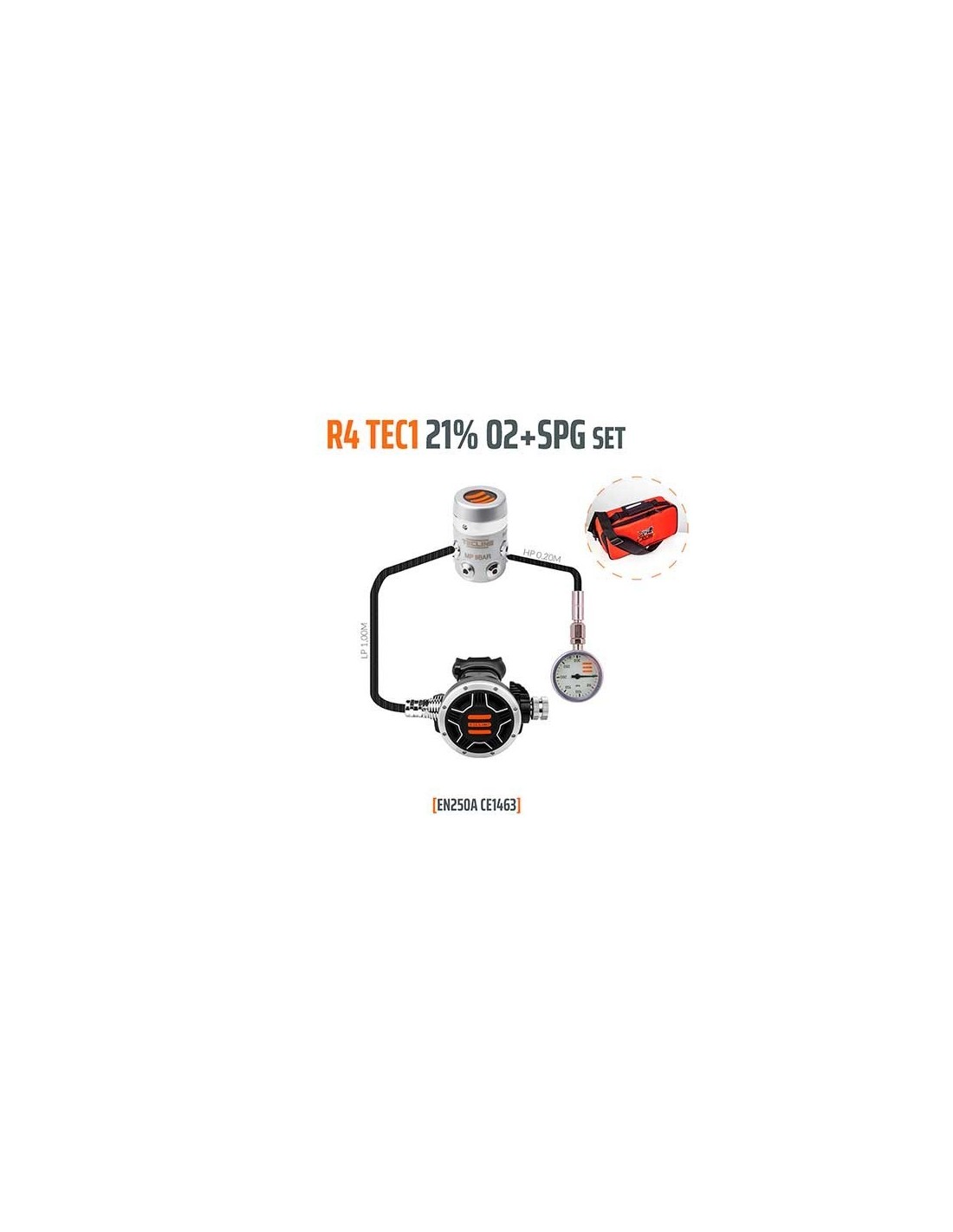 Set compuesto por 1ª etapa Tecline R4, 2ª etapa Tecline TEC1, y manómetro, ideal para botellas de etapa, ofreciéndonos un confort respiratorio óptimo en nuestras largas paradas descompresivas.