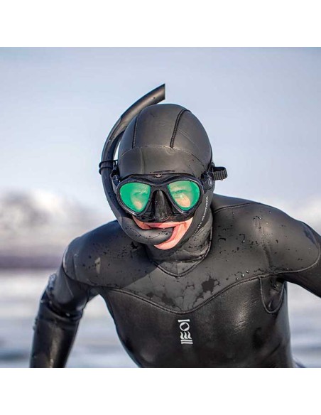 La capucha cuenta con un sello facial de piel suave que elimina la entrada de agua, mientras que el resto del interior del traje es de neopreno Metalite de "célula abierta", diseñado para maximizar la protección térmica y la elasticidad.