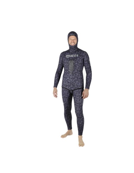 El pantalón del traje de pesca en apnea Polygon Black es de neopreno de célula abierta de 5 mm en color negro/índigo. El diseño de camuflaje índigo basado en polígonos hace que el perfil del pescador sea "invisible". Un corte preformado garantiza la comodidad y un excelente ajuste.