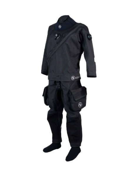 Traje seco Trilaminado generoso de corte, esto hace que nos permita incorporar mas o menos ropa interior en función de la temp. del agua, además de ofrecernos una total libertad de movimientos.