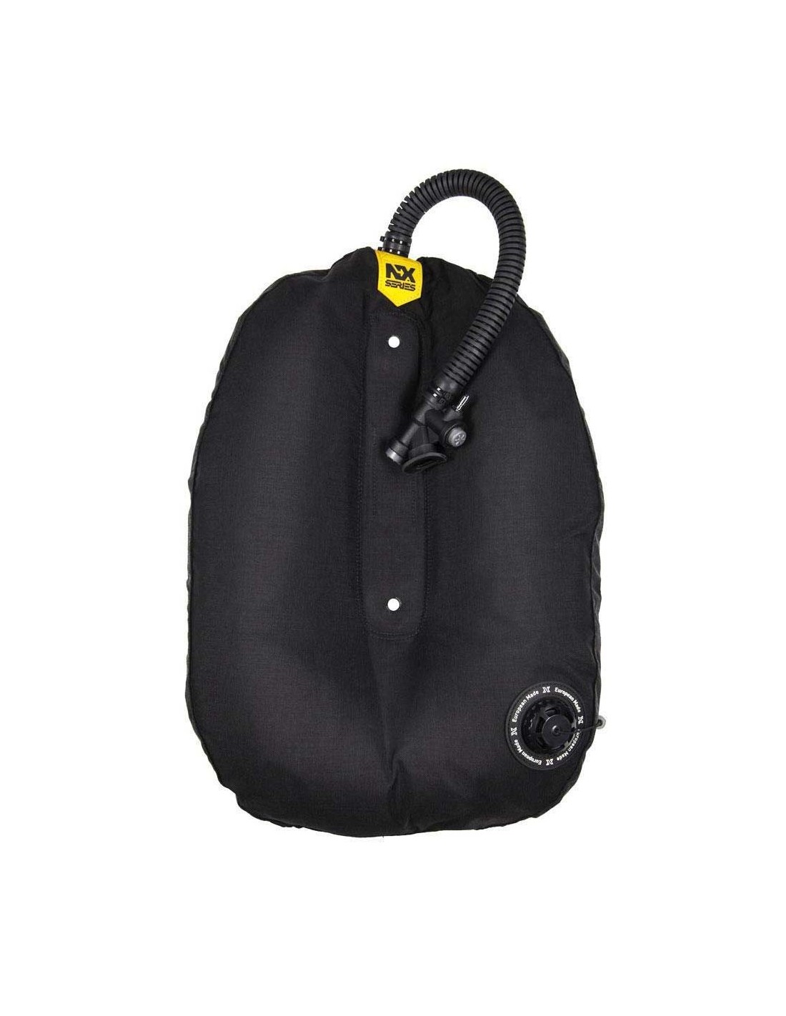Asimismo, la serie NX ha rediseñado la parte alta del ala, eliminando voluemen y dejando mas espacio para los reguladores, cabeza del buceador y latiguillos. El acceso a los grifos es mas limpio que en alas de diseño convencional.